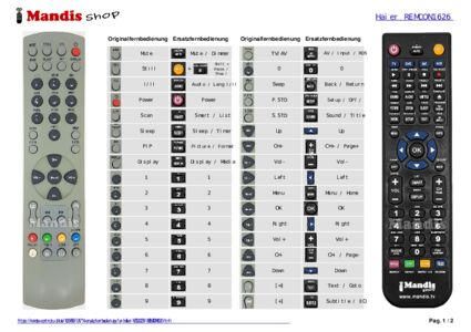Die original Fernbedienung meines Panasonic Beamers war unreperabl defekt. Ein Ersatz war nirgends zu finden. Zum Glück entdeckte ich Mandis und bestellte die Ersatzfernbedienung nach der Originalnummer. Die nach kurzer Lieferzeit eingelangte Ersatzfernbedienung erfüllt alle, für den Betrieb wesentlichen Funktionen und es gibt dafür eine perfekte Anleitung.Das umständliche Einstellen von Schärfe, Zoom, Menue usw. direkt am Beamer geht jetzt wieder per Fernbedienung. Danke Mandis!!