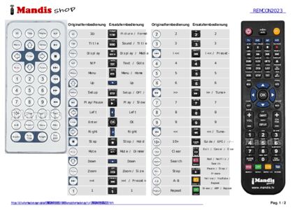 Die original Fernbedienung meines Panasonic Beamers war unreperabl defekt. Ein Ersatz war nirgends zu finden. Zum Glück entdeckte ich Mandis und bestellte die Ersatzfernbedienung nach der Originalnummer. Die nach kurzer Lieferzeit eingelangte Ersatzfernbedienung erfüllt alle, für den Betrieb wesentlichen Funktionen und es gibt dafür eine perfekte Anleitung.Das umständliche Einstellen von Schärfe, Zoom, Menue usw. direkt am Beamer geht jetzt wieder per Fernbedienung. Danke Mandis!!