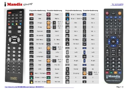 Ein Dokument ist enthalten, um die Verwendung der neuen Fernbedienung zu erleichtern, indem es die Tastenbelegung zeigt.