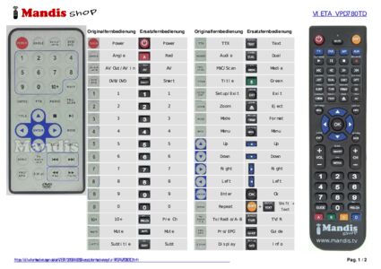 Home > Marken > Fernbedienungen VIETA > Fernbedienung für VIETA VPD780TD