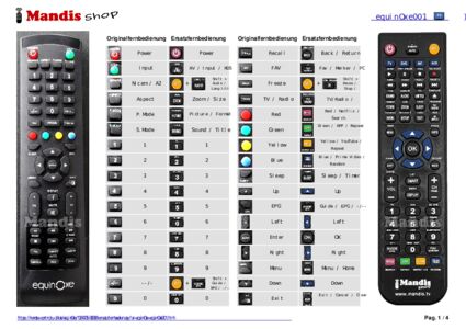 Ein Dokument ist enthalten, um die Verwendung der neuen Fernbedienung zu erleichtern, indem es die Tastenbelegung zeigt.