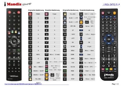 Ein Dokument ist enthalten, um die Verwendung der neuen Fernbedienung zu erleichtern, indem es die Tastenbelegung zeigt.