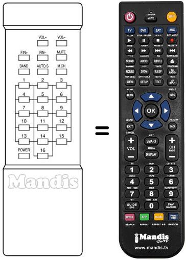 Fernbedienung, die das Original und die Gesamtheit seiner Funktionen, vollständig ersetzt. Es handelt sich jedoch nicht um eine Universalfernbedienung sondern um eine Fernbedienung die das Original ersetzt. Sie erhalten eine nach Einlegen der Batterien sofort einsatzbereite Fernbedienung. Jegliches Programmieren entfällt. Wir geben umfassende Garantie dafür, dass diese Fernbedienung alle Funktionen der Originalfernbedienung erfüllt.
