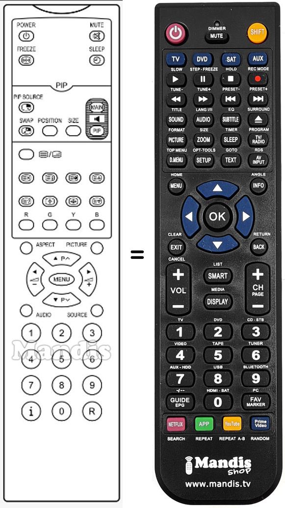 Es handelt sich jedoch nicht um eine Universalfernbedienung sondern um eine Fernbedienung die das Original ersetzt.