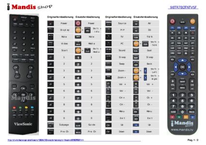 Ein Dokument ist enthalten, um die Verwendung der neuen Fernbedienung zu erleichtern, indem es die Tastenbelegung zeigt.