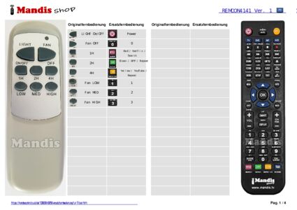 Ein Dokument ist enthalten, um die Verwendung der neuen Fernbedienung zu erleichtern, indem es die Tastenbelegung zeigt.