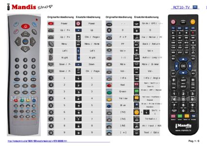 Ein Dokument ist enthalten, um die Verwendung der neuen Fernbedienung zu erleichtern, indem es die Tastenbelegung zeigt.