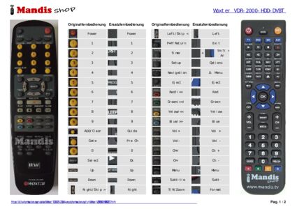 Diese Fernbedienung ersetzt Ihre VDR2000HDDDVBT in vollem Umfang und bietet alle Funktionen des Originals.