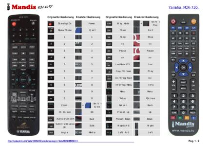 Diese Fernbedienung ersetzt Ihre MCR-730 (WP507600) in vollem Umfang und bietet alle Funktionen des Originals.