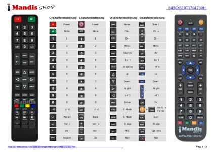 Diese Fernbedienung ersetzt Ihre 845CX510T1704730H in vollem Umfang und bietet alle Funktionen des Originals.