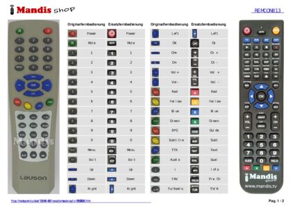 Ein Dokument ist enthalten, um die Verwendung der neuen Fernbedienung zu erleichtern, indem es die Tastenbelegung zeigt.