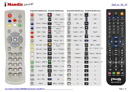 Ein Dokument ist enthalten, um die Verwendung der neuen Fernbedienung zu erleichtern, indem es die Tastenbelegung zeigt.