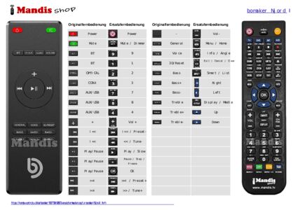 Ein Dokument ist enthalten, um die Verwendung der neuen Fernbedienung zu erleichtern, indem es die Tastenbelegung zeigt.