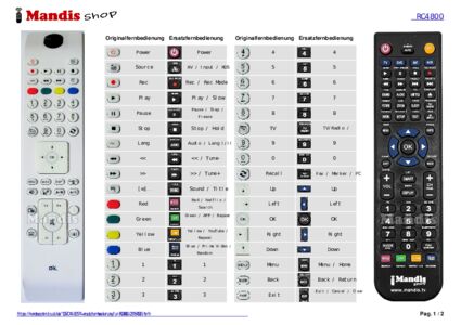 Ein Dokument ist enthalten, um die Verwendung der neuen Fernbedienung zu erleichtern, indem es die Tastenbelegung zeigt.
