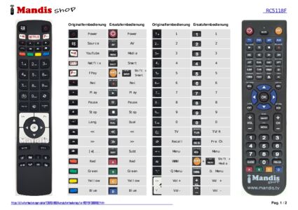Ein Dokument ist enthalten, um die Verwendung der neuen Fernbedienung zu erleichtern, indem es die Tastenbelegung zeigt.