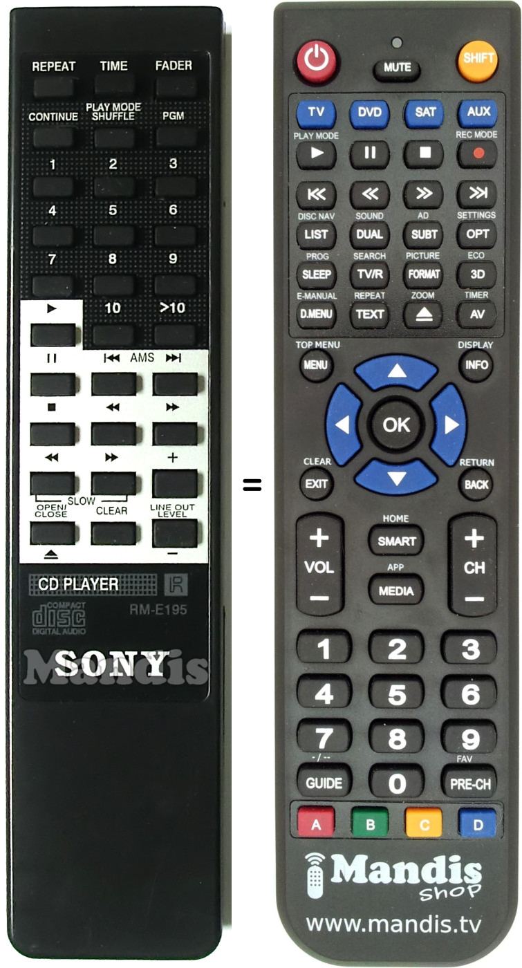 Below, we will show you the correspondence between each button on the original remote control and the button that performs the same function on the replacement remote control. In some cases, you may need to press the SHIFT key before pressing another button to perform certain actions. These additional functions are often not widely used and are included to facilitate understanding of the replacement remote control, or because the original remote control has more buttons than its equivalent.