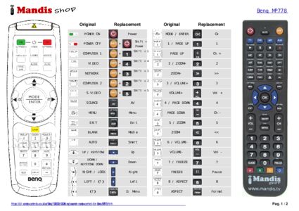 Home > Brands > Remote controls Benq > Remote control for Benq MP778 > Interactive key distribution Benq MP778
