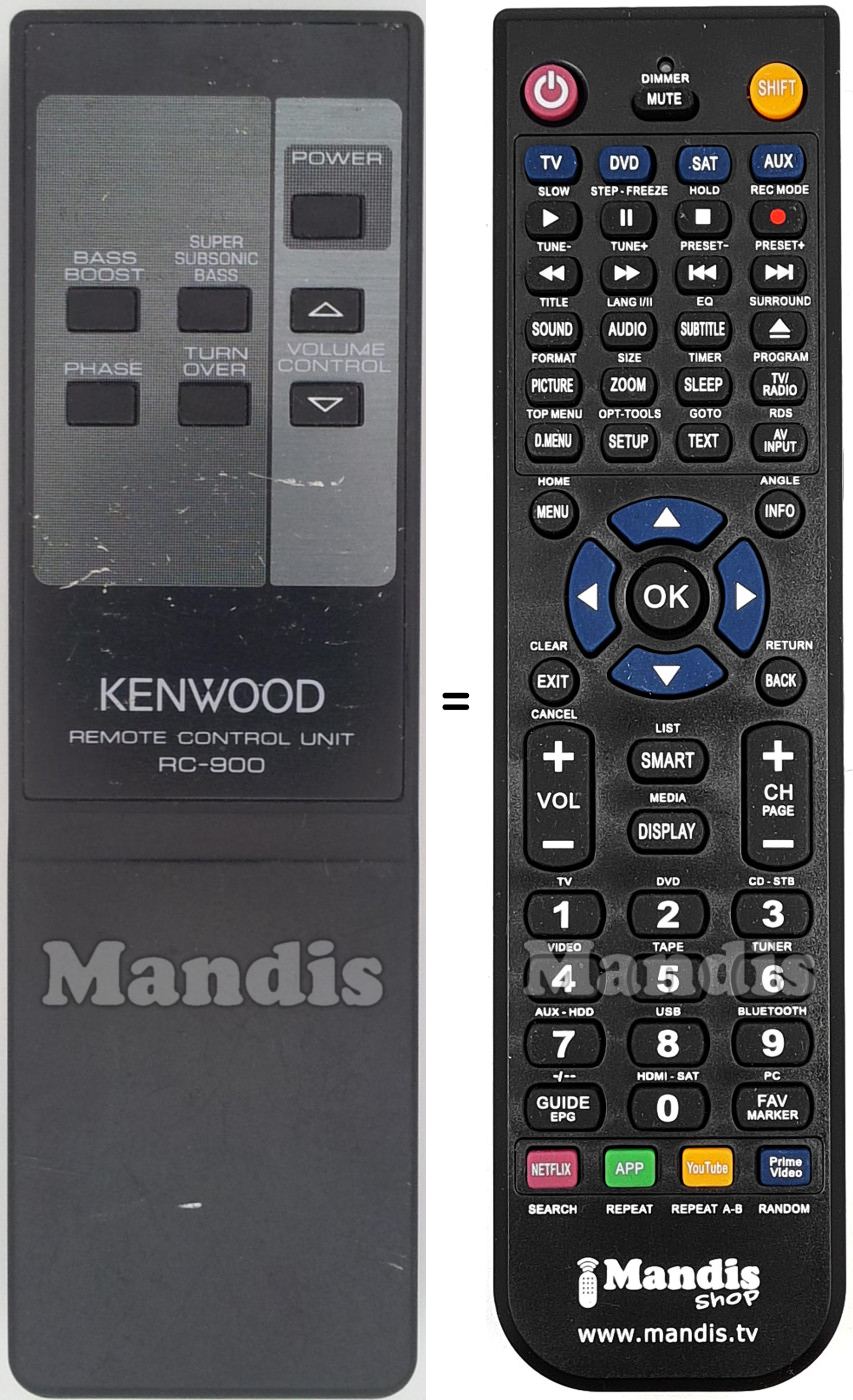 Below, we will show you the correspondence between each button on the original remote control and the button that performs the same function on the replacement remote control. In some cases, you may need to press the SHIFT key before pressing another button to perform certain actions. These additional functions are often not widely used and are included to facilitate understanding of the replacement remote control, or because the original remote control has more buttons than its equivalent.