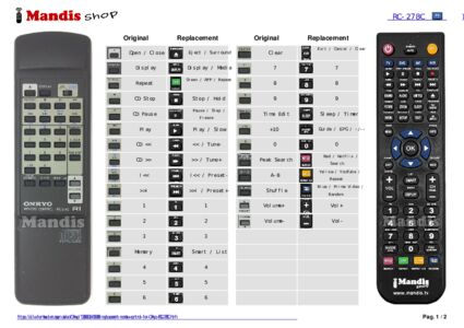 1. Look at the images of the two remote controls: the original (left) and the replacement (right).