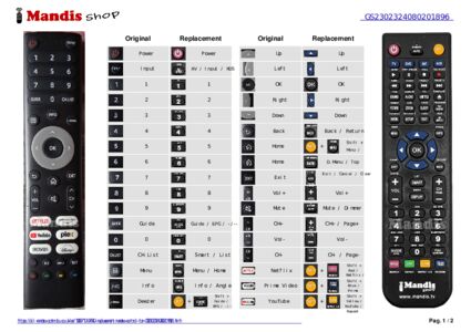 A document is included to help you use the new remote control easily, showing the button correspondence.