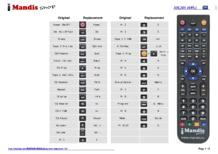 Below, we will show you the correspondence between each button on the original remote control and the button that performs the same function on the replacement remote control. In some cases, you may need to press the SHIFT key before pressing another button to perform certain actions. These additional functions are often not widely used and are included to facilitate understanding of the replacement remote control, or because the original remote control has more buttons than its equivalent.