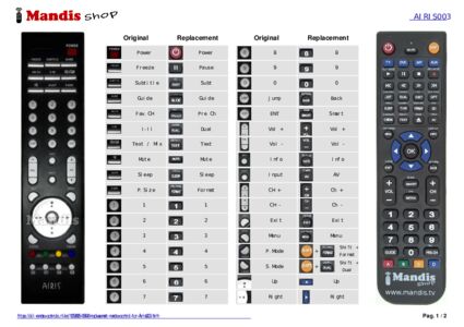 This remote control fully replaces your Airis003 and offers all the functions of the original.