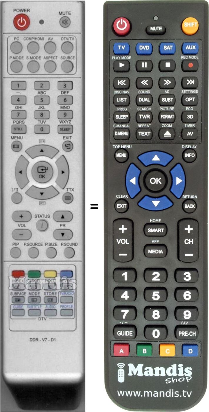 This remote control fully replaces your DDR-V7-D1 and offers all the functions of the original.