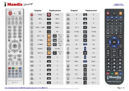 Below, we will show you the correspondence between each button on the original remote control and the button that performs the same function on the replacement remote control. In some cases, you may need to press the SHIFT key before pressing another button to perform certain actions. These additional functions are often not widely used and are included to facilitate understanding of the replacement remote control, or because the original remote control has more buttons than its equivalent.