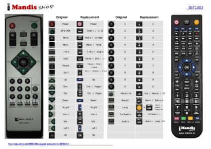 This remote control fully replaces your BST1003 and offers all the functions of the original.