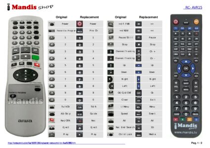 Below, we will show you the correspondence between each button on the original remote control and the button that performs the same function on the replacement remote control. In some cases, you may need to press the SHIFT key before pressing another button to perform certain actions. These additional functions are often not widely used and are included to facilitate understanding of the replacement remote control, or because the original remote control has more buttons than its equivalent.