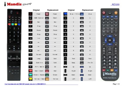 Below, we will show you the correspondence between each button on the original remote control and the button that performs the same function on the replacement remote control. In some cases, you may need to press the SHIFT key before pressing another button to perform certain actions. These additional functions are often not widely used and are included to facilitate understanding of the replacement remote control, or because the original remote control has more buttons than its equivalent.