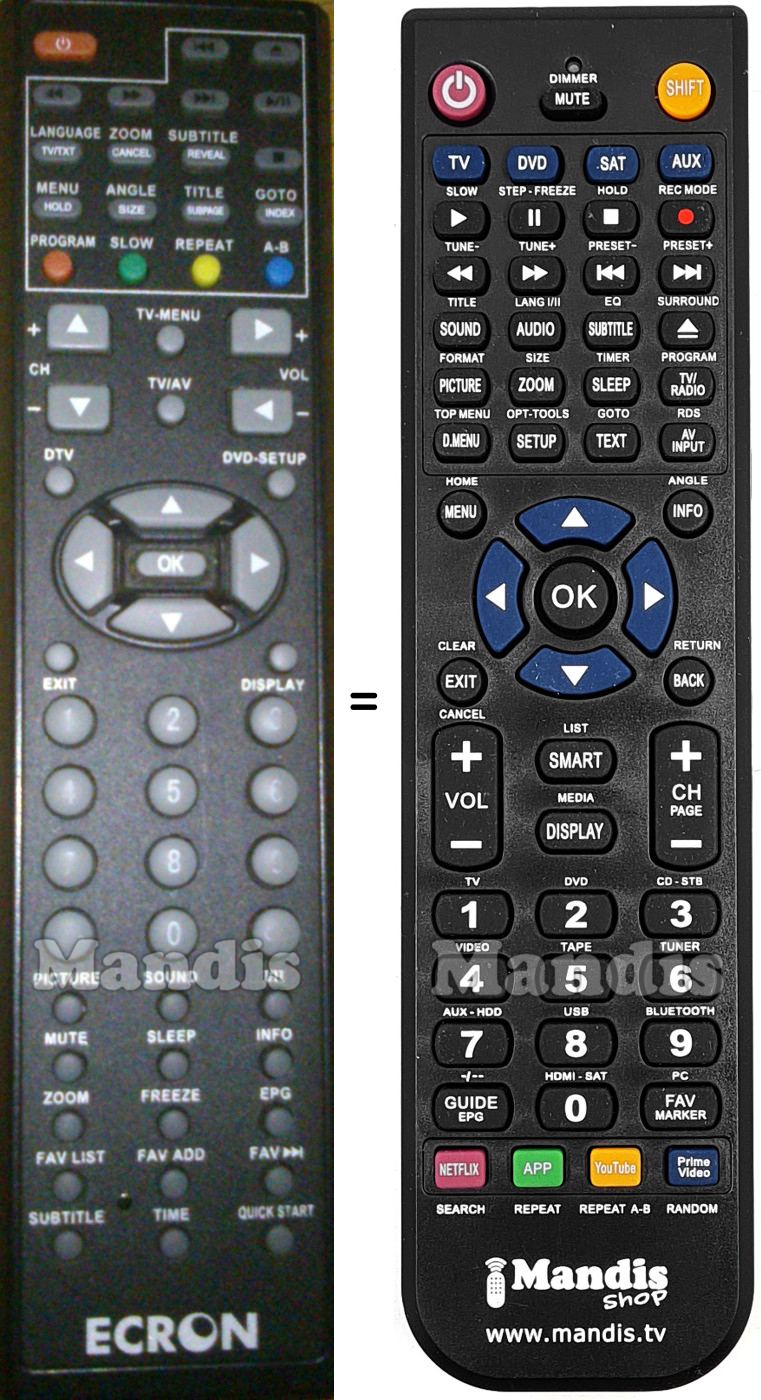 This remote control fully replaces your DVB19DVDNG and offers all the functions of the original.