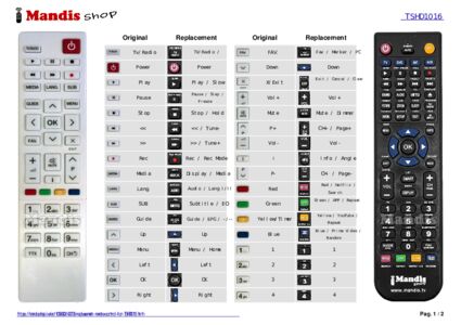 This remote control fully replaces your TSHD1016 and offers all the functions of the original.