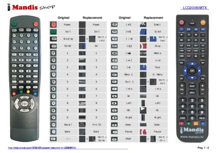 This remote control fully replaces your LCD2006WXTK and offers all the functions of the original.