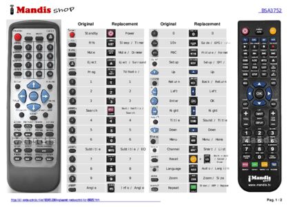 Below, we will show you the correspondence between each button on the original remote control and the button that performs the same function on the replacement remote control. In some cases, you may need to press the SHIFT key before pressing another button to perform certain actions. These additional functions are often not widely used and are included to facilitate understanding of the replacement remote control, or because the original remote control has more buttons than its equivalent.