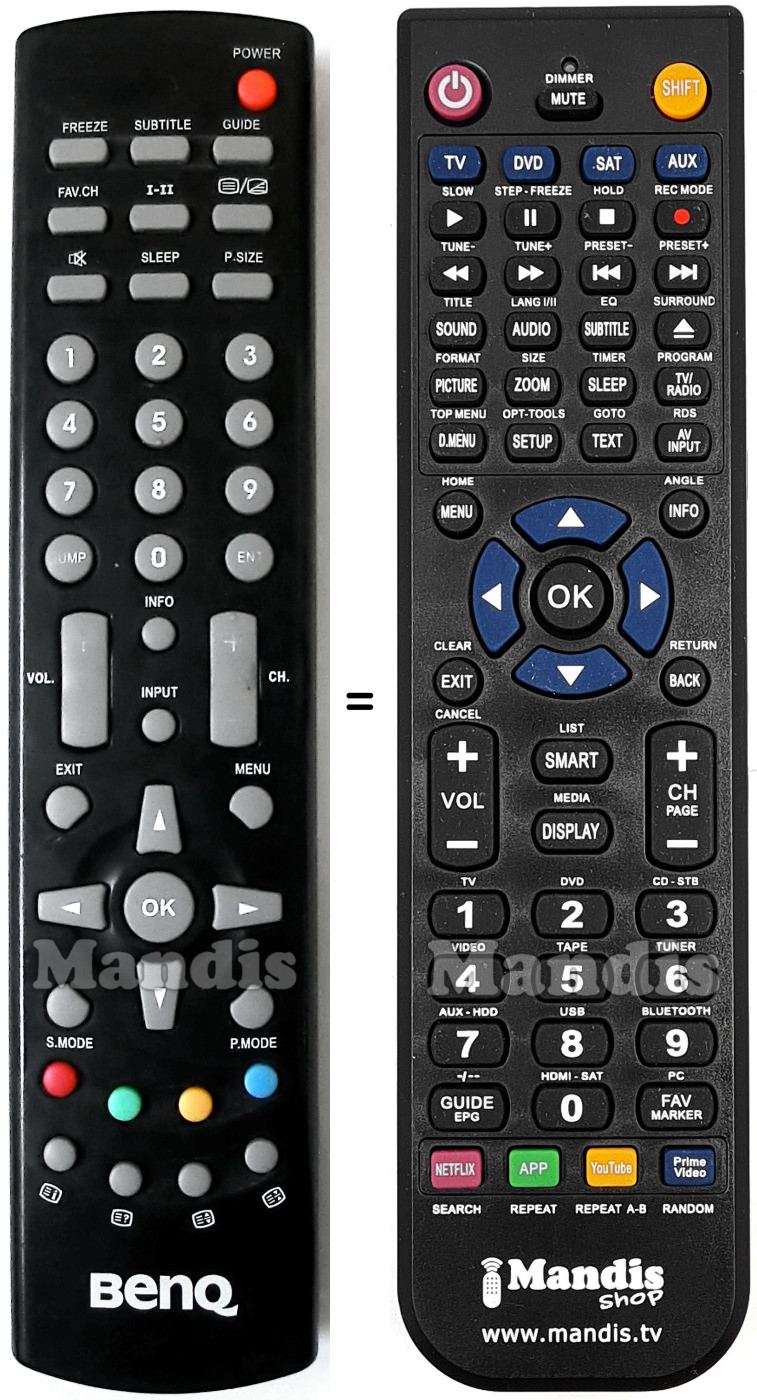 This remote control fully replaces your BenQ002 and offers all the functions of the original.