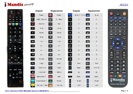 This remote control fully replaces your RC5103 and offers all the functions of the original.
