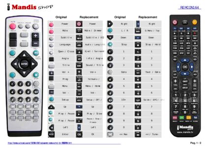 Below, we will show you the correspondence between each button on the original remote control and the button that performs the same function on the replacement remote control. In some cases, you may need to press the SHIFT key before pressing another button to perform certain actions. These additional functions are often not widely used and are included to facilitate understanding of the replacement remote control, or because the original remote control has more buttons than its equivalent.