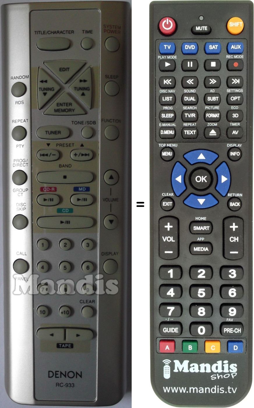 Original remote control DENON RC-1197 (30701016600AS)Original remote control DENON RC-1197 (30701016600AS)Available in stock39.08 € (VAT included)DenonFor DNP-730AEOriginal remote control DENON RC-1213 (30701022800AS)Original remote control DENON RC-1213 (30701022800AS)Available in stock62.75 € (VAT included)DenonFor PMA-1600NE, DCD-1600NEOriginal remote control DENON RC-1224 (30701025700AD)Original remote control DENON RC-1224 (30701025700AD)Available in stock48.74 € (VAT included)DenonFor DNP-800NEOriginal remote control DENON RC-1239 (30701028000AD)Original remote control DENON RC-1239 (30701028000AD)Available in stock41.39 € (VAT included)DenonFor AVC-X3700H, AVR-X3700H, AVR-X2700H, AVR-X2700H DAB, AVR-S960HOriginal remote control DENON RC-1235 (30701027200AD)Original remote control DENON RC-1235 (30701027200AD)Available in stock42.21 € (VAT included)DenonFor DRA-800HOriginal remote control DENON RC-1233 (30701027000AD)Original remote control DENON RC-1233 (30701027000AD)Available in stock53.79 € (VAT included)DenonFor PMA-150HOriginal remote control DENON RC-1220 (30701024300AS)Original remote control DENON RC-1220 (30701024300AS)Available in stock64.71 € (VAT included)DenonFor PMA-60, PMA-30Replacement remote control Denon RC-1184Replacement remote control Denon RC-1184Available in stock22.73 € (VAT included)DenonFor AVR-X3000Replacement remote control Boston 120003561Replacement remote control Boston 120003561Available in stock22.73 € (VAT included)BostonFor TVEE10, TVEE26Replacement remote control Denon RC-1169Replacement remote control Denon RC-1169Available in stock22.73 € (VAT included)DenonFor AVR-1713Replacement remote control Denon RC-1168Replacement remote control Denon RC-1168Available in stock22.73 € (VAT included)DenonFor RC-1168Replacement remote control Denon RC-544Replacement remote control Denon RC-544Available in stock22.73 € (VAT included)DenonFor DVD 3300Replacement remote control Denon RC933Replacement remote control Denon RC933Available in stock22.73 € (VAT included)DenonFor RCDM33Replacement remote control Denon RC-1145Replacement remote control Denon RC-1145Available in stock22.73 € (VAT included)DenonFor RC-1145, AVR-4311, AVR-4311CIReplacement remote control Denon RC1227Replacement remote control Denon RC1227Available in stock22.73 € (VAT included)DenonFor AVR-X1500HReplacement remote control Marantz RC43Replacement remote control Marantz RC43Available in stock22.73 € (VAT included)MarantzFor PM493Replacement remote control Denon RC-282Replacement remote control Denon RC-282Available in stock22.73 € (VAT included)DenonFor DMDM31Replacement remote control RC-1028Replacement remote control RC-1028Available in stock22.73 € (VAT included)DenonReplacement remote control Denon RC-241Replacement remote control Denon RC-241Available in stock22.73 € (VAT included)DenonFor DCD-590, DCD-690Original remote control DENON RC-1234 (30701027100AD)Original remote control DENON RC-1234 (30701027100AD)Available in stock37.71 € (VAT included)DenonFor DCD-600NE, PMA-600NE