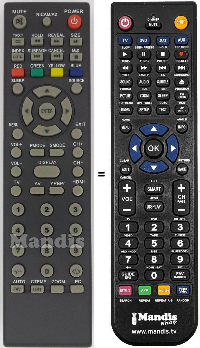 When we send the remote control, we also send a document with the correspondence of the keys between the replacement and the original remote controls which allows you to know how to perform the functions of the original remote. Sometimes it is available on the web so you can download it.