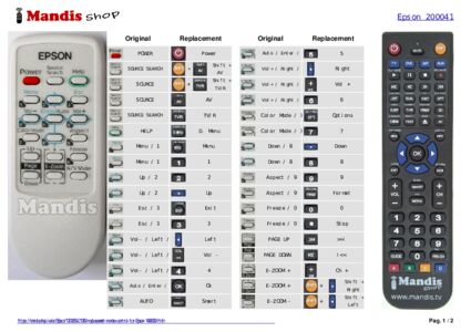 Below, we will show you the correspondence between each button on the original remote control and the button that performs the same function on the replacement remote control. In some cases, you may need to press the SHIFT key before pressing another button to perform certain actions. These additional functions are often not widely used and are included to facilitate understanding of the replacement remote control, or because the original remote control has more buttons than its equivalent.