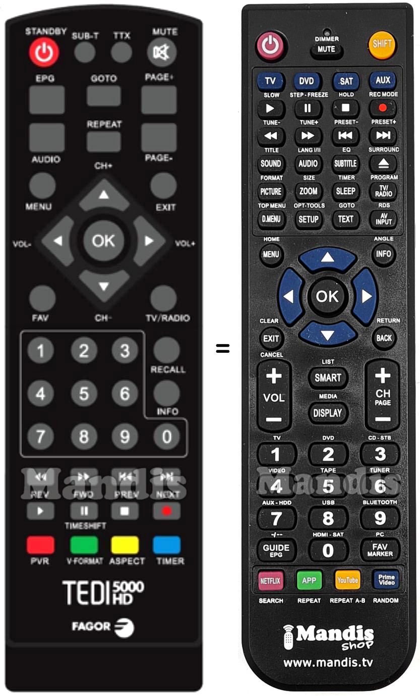 This remote control fully replaces your TEDI5000HD and offers all the functions of the original.