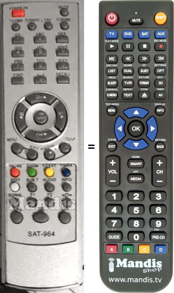 This remote control fully replaces your SAT-964 and offers all the functions of the original.