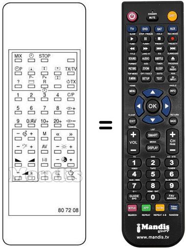 Remote control to replace the original 807208 and all its functions.