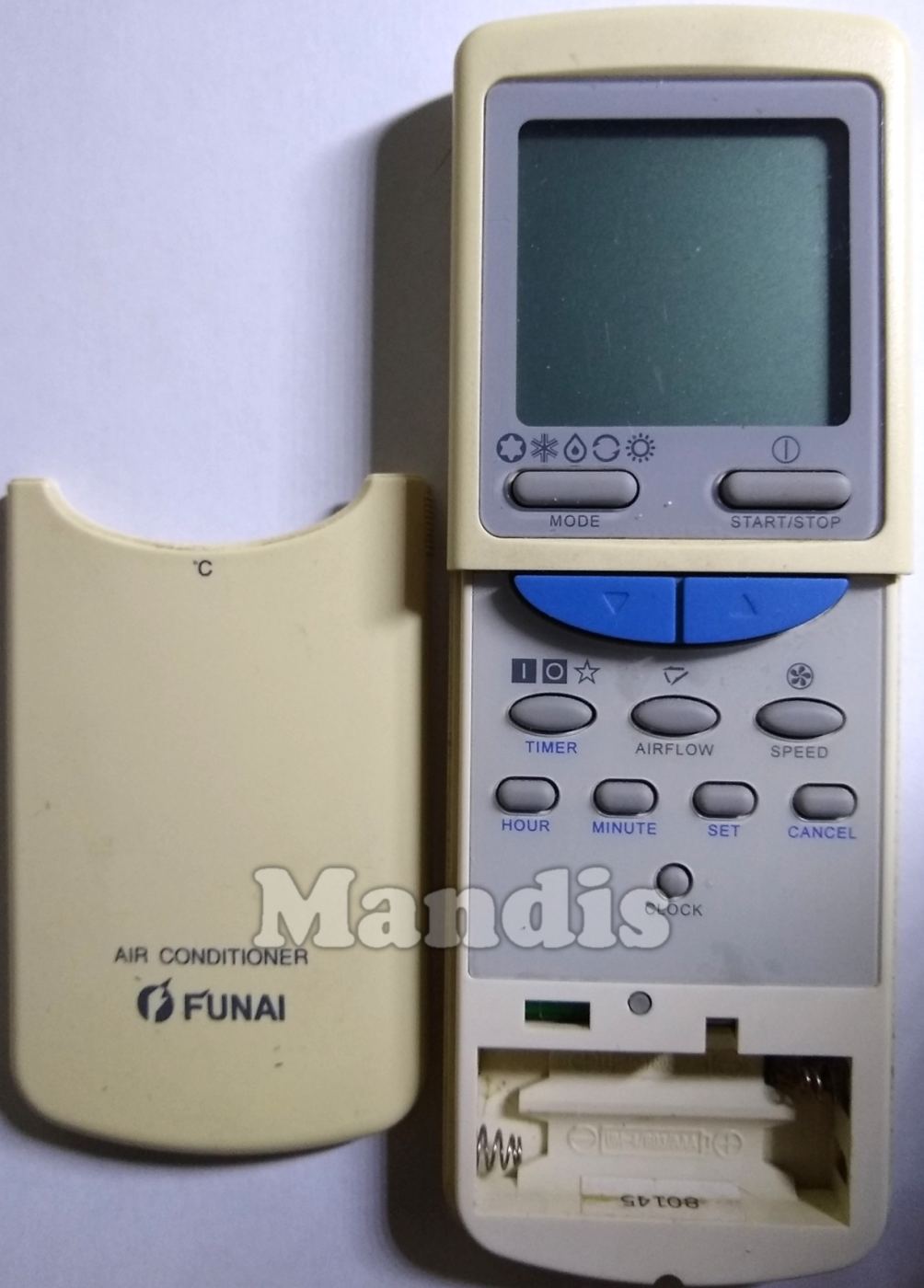 original remote control FUNAI001 used for air conditioners for the brand Funai. This is an original remote control.