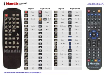 Below, we will show you the correspondence between each button on the original remote control and the button that performs the same function on the replacement remote control. In some cases, you may need to press the SHIFT key before pressing another button to perform certain actions. These additional functions are often not widely used and are included to facilitate understanding of the replacement remote control, or because the original remote control has more buttons than its equivalent.