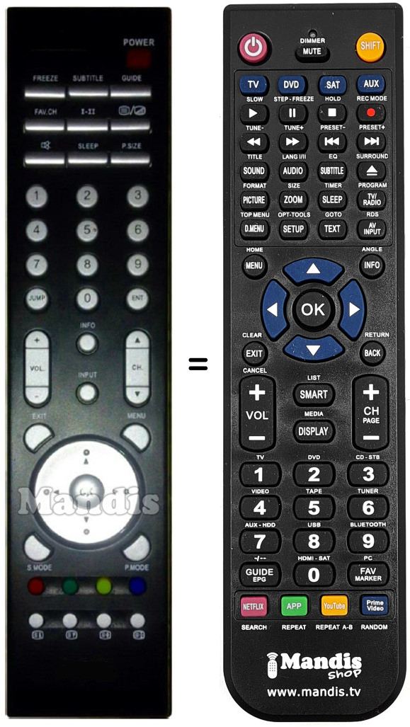 Remote control to replace the original and all its functions.
