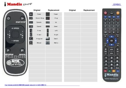 This remote control fully replaces your GYM001 and offers all the functions of the original.