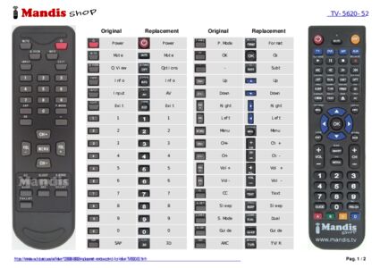 This remote control fully replaces your TV-5620-52 and offers all the functions of the original.