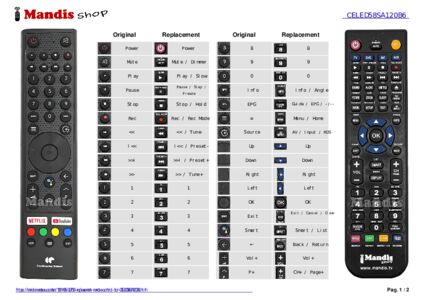 Below, we will show you the correspondence between each button on the original remote control and the button that performs the same function on the replacement remote control. In some cases, you may need to press the SHIFT key before pressing another button to perform certain actions. These additional functions are often not widely used and are included to facilitate understanding of the replacement remote control, or because the original remote control has more buttons than its equivalent.